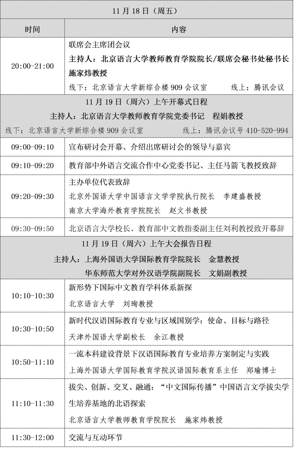 由全国高校汉语国际教育本科专业负责人联席会秘书处、4家主席单位和5家副主席单位联合主办,北京语言大学教师教育学院承办的“第五届全国高校汉语国际教育本科专业建设研讨会暨第八届全国高校汉语国际教育本科专业负责人联席会”将于2022年11月18-20日在北京语言大学举行。以下为会议主要日程,有关会议的具体内容,可详见附件中的会议手册。