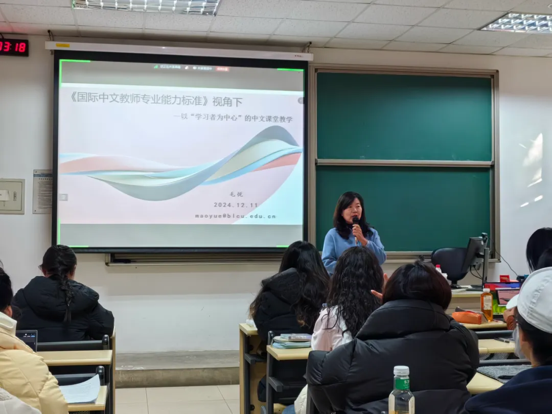 2024年12月11日下午,北京语言大学教师教育学院联合世界汉语教学学会课程与教材专业委员会、教育部“中文国际传播”中国语言文学拔尖学生培养基地、教育部汉语国际教育专业虚拟教研室、全国高校汉语国际教育本科专业负责人联席会共同举办的“国际中文教育名家讲坛”第十二讲如期举行。本次讲座邀请到毛悦教授,为同学们带来了题为《<国际中文教师专业能力标准>视角下——以“学习者为中心”的中文课堂教学》的专题讲座。讲座由教师教育学院汉语教育教研室主任郑家平副教授主持。
