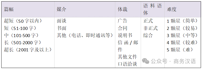 六、语料篇幅和难度,各分为五级;
