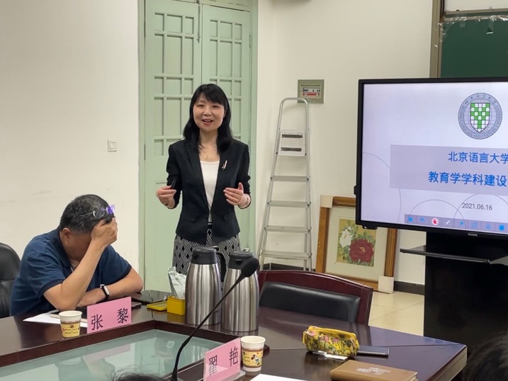 2021年6月16日下午,教育部教育学本科教学指导委员会秘书长、清华大学教育研究院李曼丽教授应邀出席北京语言大学人文社科学部举办的教育学学科建设与发展论坛。论坛同时邀请了北京语言大学国际学生教育政策与评价研究院院长王佶旻教授、汉语国际教育研究院副院长姜丽萍教授、汉语国际教育学部沈庶英教授、汉语国际教育研究院翟艳教授等校内专家,人文社会科学学部主任程娟、副主任施家炜以及汉语教育学院张黎、杨玉玲、郭睿、郭晓麟、余蓝、李加𣁦等学科成员参加了论坛。论坛由人文社会科学学部主任程娟教授主持。