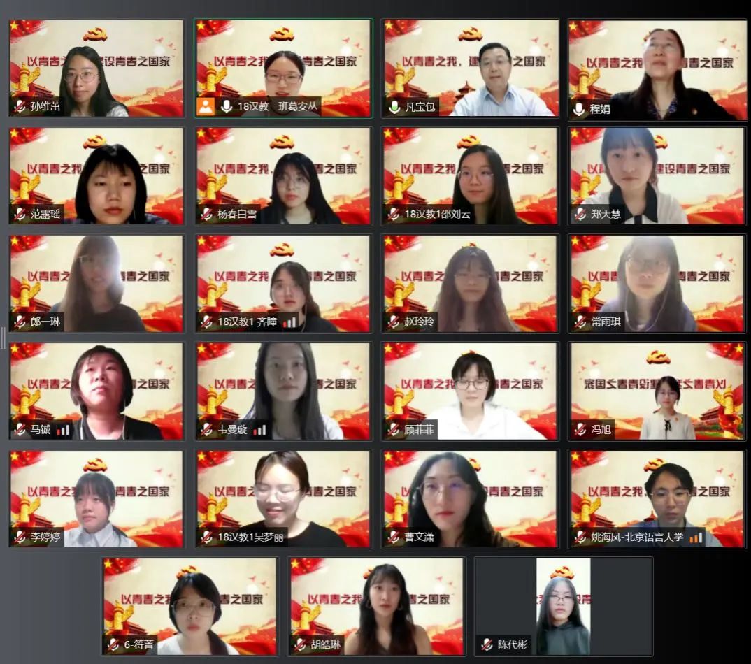 为认真学习领会新时代党的建设总要求,努力贯彻落实近期习近平总书记的重要讲话精神,5月22日晚,校长刘利深入基层,通过线上方式参加了教师教育学院汉语国际教育专业本科生第一党支部“以青春之我,建设青春之国家”主题党日活动。教师教育学院党委书记程娟,团委书记、研究生辅导员马铖,本科生辅导员曹文潇列席。