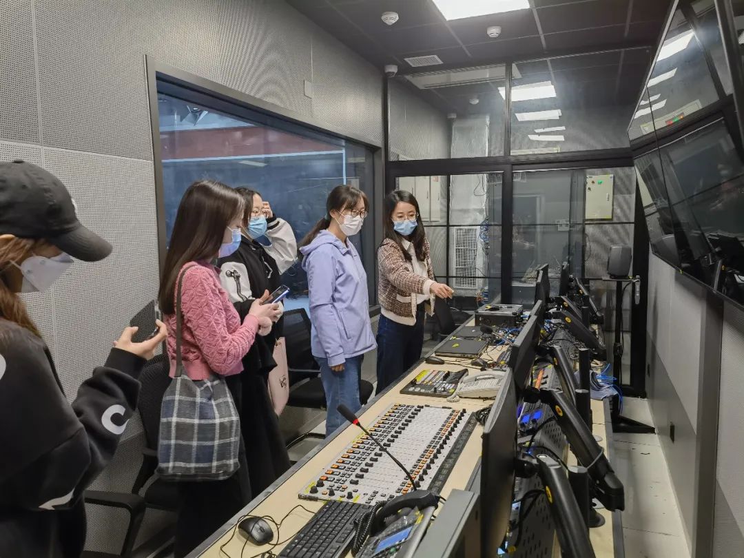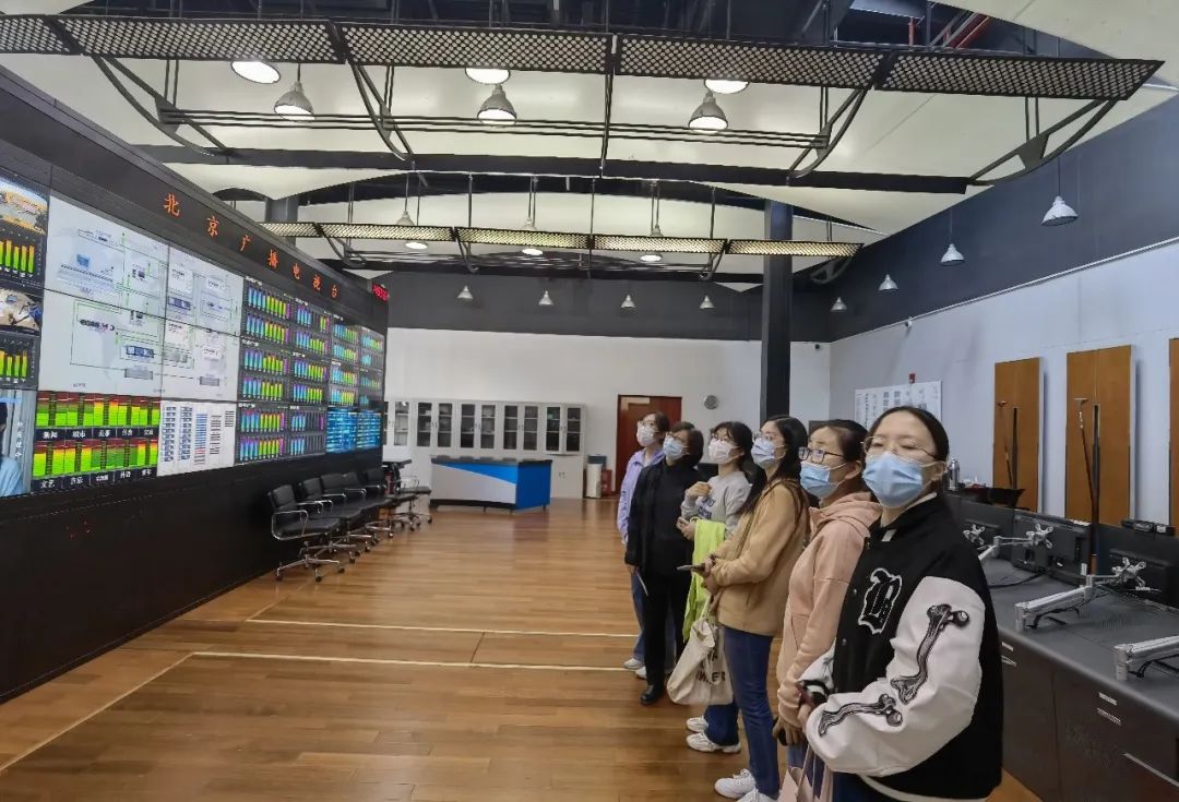 北京外语广播中心副主任曹军生带领党支部成员参观了旗下的交通广播、文艺广播、故事广播、外语广播等电台的访谈直播间、维护各频道数字化播出的主控机房。在参观过程中,工作人员就同学们关心的问题做了细致、专业的讲解。