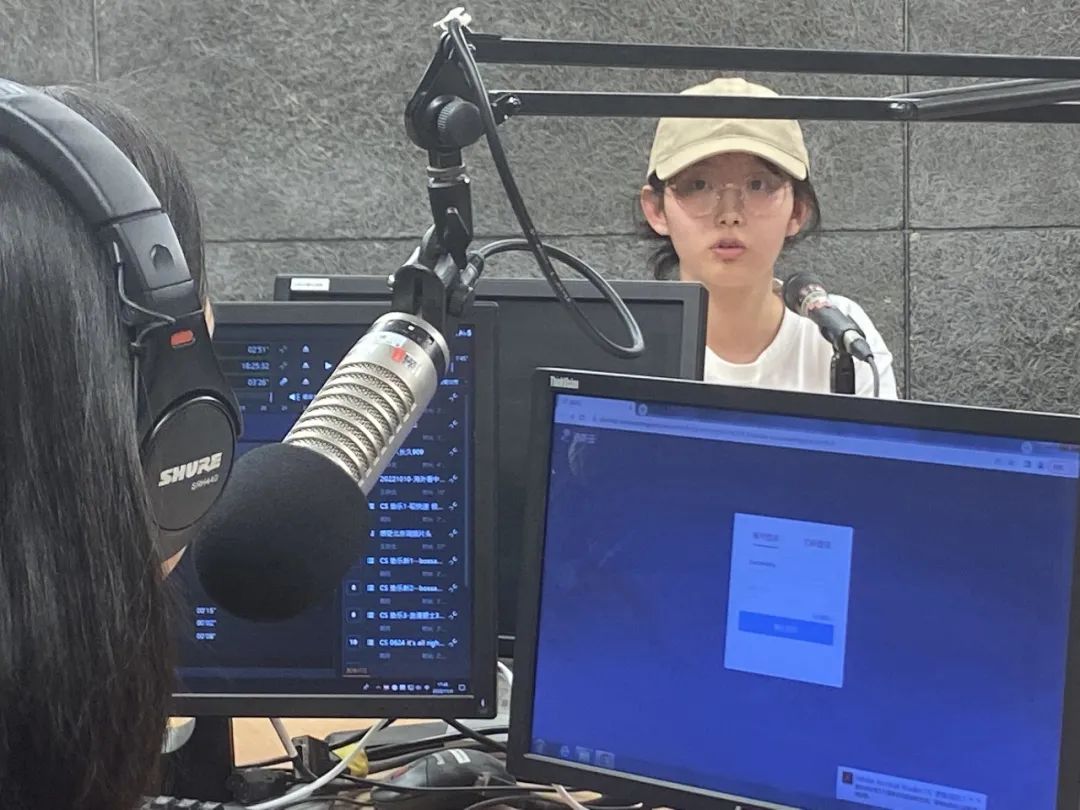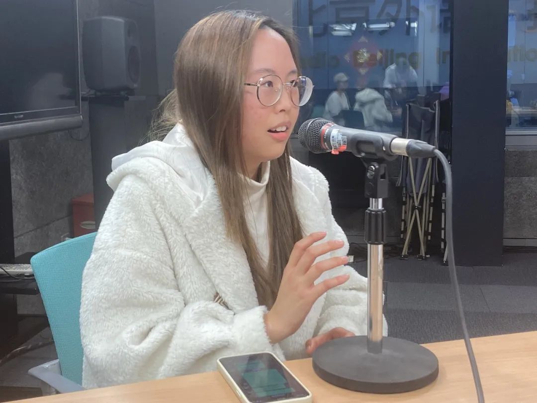 座谈会结束后,冯嘉彤、蒋雨桐同学还参加了外语广播电台旗舰栏目《感受北京》的录制。两位同学在节目中谈到北语的汉语教学经验,为身为北语学生而感到自豪,同时也认识到电台节目录制对英语听说能力和临场反应能力的高要求,表示今后要着力提升综合能力,以更好地适应职场要求。