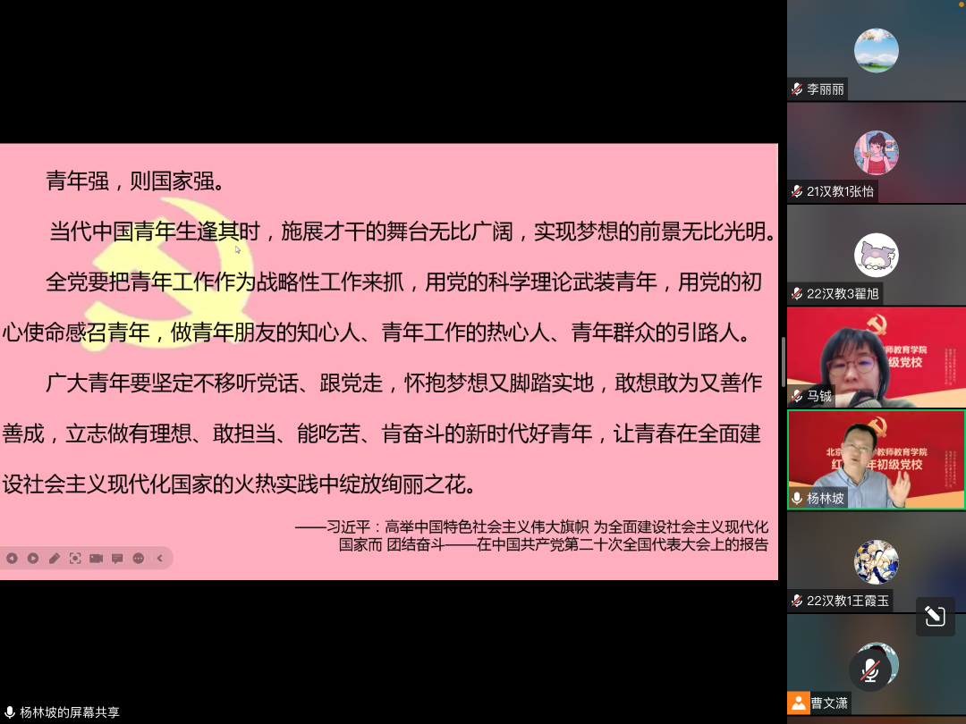 11月30日中午,教师教育学院“红领青年”初级党校(第一期)第二讲于线上顺利举行。本次讲座嘉宾为马克思主义学院党总支副书记杨林坡副教授。