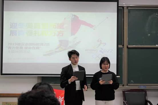 本次班团活动主要包含“我身边的冬奥故事”“冬奥会中的时代使命与责任担当”“汉教学子的冬奥青春力量”三部分,主持人班长兰天启和团支书周笑竹用生动的语言向同学们讲述冬奥知识,并将志愿者基础知识、竞赛基础知识、传统文化及汉语元素等融入其中,充分展现了汉教学子特有的专业优势。同时,冬奥知识竞答、角色扮演等丰富多彩的互动活动也激发了同学们领悟冬奥、参与冰雪运动的热情,激励同学们以实际行动助力北京冬奥会。