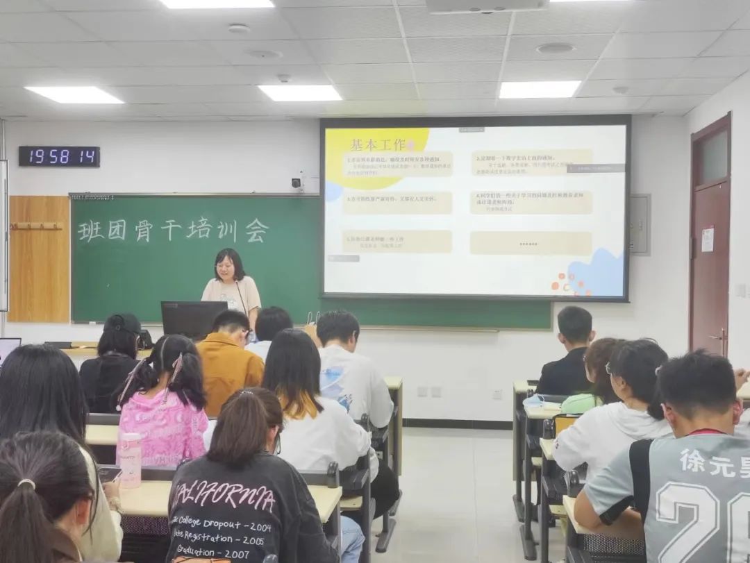 9月30日晚七点,教师教育学院2022级班团骨干培训会在教二105顺利举办。学院团委书记马铖老师,本科生辅导员曹文潇老师出席会议。学院党支部代表、各班优秀班委、团支书代表现场分享,2022级各班班委到场参加。本次会议由学院团委组织部部长梁苡萌主持。