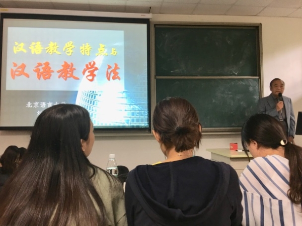 刘珣教授以生动有趣的语言和例子将理论化的方法和知识简易化和生活化,比如在讲解汉语教学方法时,他用一个形象的比喻“老师拿着一袋子知识来上课,同学们也各自拿着一个袋子来上课,老师上课时就是把自己的一袋子知识倒进每一个学生的袋子里”来说明灌输式教学的方法是不可取的,而应当以学生为主体,教师为主导来进行汉语课堂教学。刘珣教授不仅进行具体的讲解,还为我们总结了启示,他说道:“‘教无定法’,要因时、因地、因人制宜,避免片面化和绝对化;‘教有定则’,要体现第二语言教学的一般规律和汉语教学的特殊规律。”“在面对学生时,教学中不宜强调汉语难;作为教师,清醒认识到汉语是一种难学的外语。要通过汉语教学法研究和教材研究研发,尽可能化解汉语难的问题。借鉴和吸收西方第二语言教学理论和教学方法,但不能生搬硬套;更重要的是从汉语本身特点出发,探索适合于汉语的教学法。”