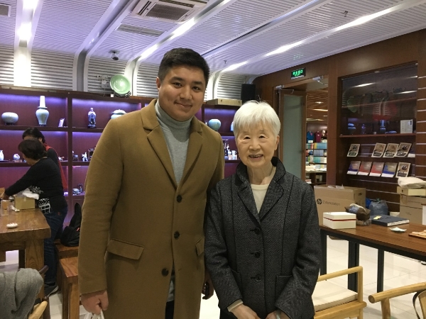 陆俭明先生、马真先生与北语汉研中心教授郑艳群(右2)、人文社科学部副主任施家炜(左3)、汉语国际教育专家李艾(右3),及北语在读硕士生合影