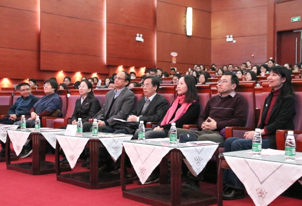 2017年12月1日下午两点,北京语言大学第十三届人文学术月开幕式暨第三届人文社会科学研究生学术论坛开幕式在逸夫报告厅里顺利拉开帷幕,本届人文学术月围绕“学思问道”主题来进行。我校副校长曹志耘教授,研究生工作部部长、研究生院常务副院长郭鹏老师,科研处处长聂丹老师,汉语学院院长曹文老师,教务处副处长刘志敬老师,人文社会科学学部党委书记程娟老师,人文社会科学学部副主任、汉语教育学院院长施家炜老师,人文社会科学学部副主任、新闻传播学院院长云国强老师,马克思主义学院杨林坡老师,汉语教育学院罗卫东老师、王丽娟老师、余蓝老师,人文学院李玲老师、黄悦老师,国际关系学院张善鹏老师,学部学生办公室李双依老师,学部教务办公室玄铮老师以及二百余名学生出席了此次开幕式。