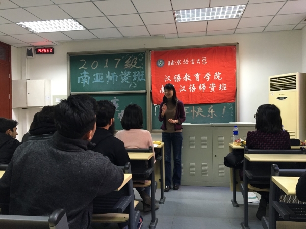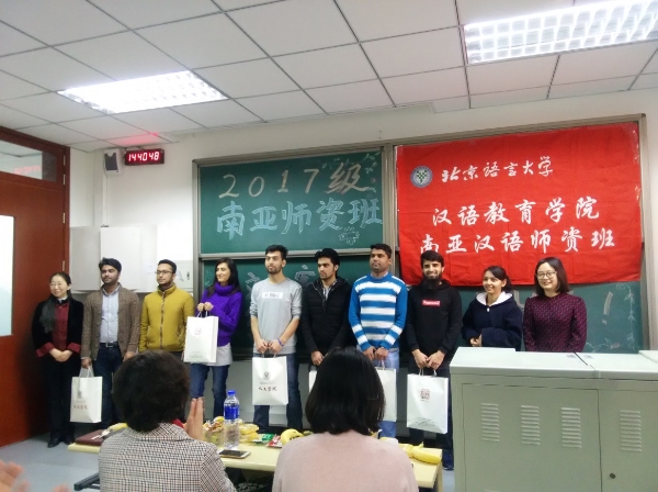12月22日,人文社会科学学部为2017级南亚班同学举办了隆重热烈的“我与孔子学院的故事”和“我的中国梦”主题征文颁奖典礼,活动受到了学校和学部的高度重视,除了在活动经费上给予大力支持外,各级领导还在百忙之中亲自参加颁奖典礼。亲临现场的领导有北京语言大学孔子学院事业部邱萍副主任和李禄宁老师、北京语言大学国际学生事务办公室王冬玲老师、人文社会科学学部党委书记程娟老师、人文社会科学学部副主任、汉语教育学院院长施家炜老师。
