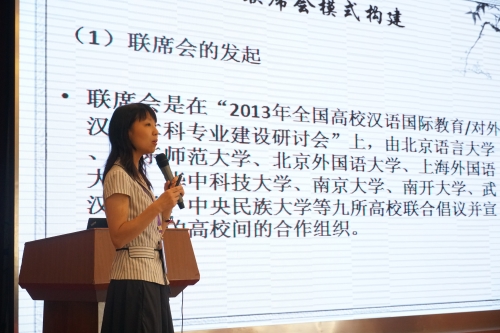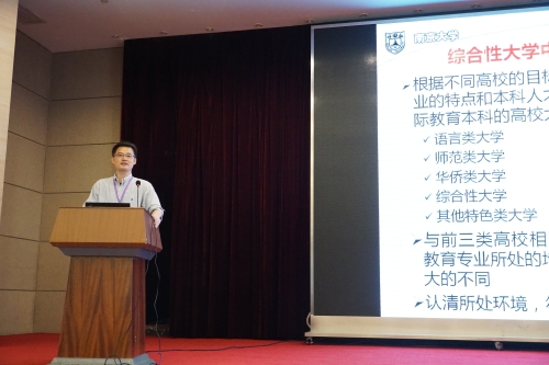 9月21日下午,各位专家学者在10个分会场围绕专业建设、培养方案、留学生培养、课程设置、教学实践、教材教法、师资培养、毕业论文等9个主题作了报告。其中北京语言大学张黎教授以《本科汉语国际教育专业人才能力指标体系探讨》为题,提出以全人发展为指导,以知识、实践技能、智慧、情感、态度发展为能力分类基本框架,在此基础上细分能力指标,并与未来就业或深造方向相匹配来构建汉语国际教育专业人才培养的能力指标体系。山东师范大学王其和教授作了题为《师范专业认证背景下的汉语国际教育专业本科人才培养方案》的报告,详细介绍了师范类院校汉语国际教育专业本科人才培养的模式和特色,辽宁师范大学原新梅教授也对这一话题进行了探讨。留学生培养相关方面,河南大学马惠玲教授以《汉语国际教育留学生本科生培养模式探索与实践》为题介绍了具有本地特色的留学生培养模式,重庆大学沈荭副教授则着重探讨了留学生通识课程的建设和实践。课程设置和教学方面,南京信息工程大学张勇副教授、西南民族大学邓文彬教授分别介绍了本校汉语国际教育专业的课程设置情况,北京外国语大学张霖副教授和马晓冬副教授则具体讨论了汉语国际教育专业文学课程的改造与教学。师资培养方面,天津科技大学赵瑾教授详细介绍了本校汉语国际教育本科专业“两带三轴”的文化实践模式,颇具特色和创意。此外,广西外国语学院张小克教授、华东师范大学刘弘老师分别就汉语国际教育专业学科建设和本科毕业论文选题等重要议题作了报告。在集体互动期间,学者们积极分享了本校与上述议题相关的实践经验,并对实践中遇到的难题与同仁们进行了深入的探讨,各分会场气氛热烈,与会学者纷纷表示收获良多。