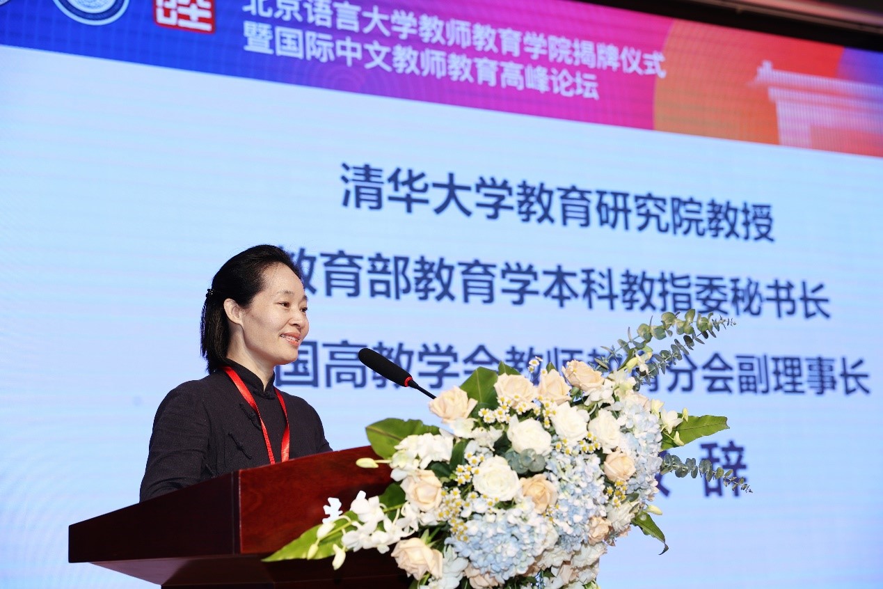 清华大学教育研究院教授、教育部教育学本科教指委秘书长、全国高教学会教师教育分会副理事长李曼丽致辞