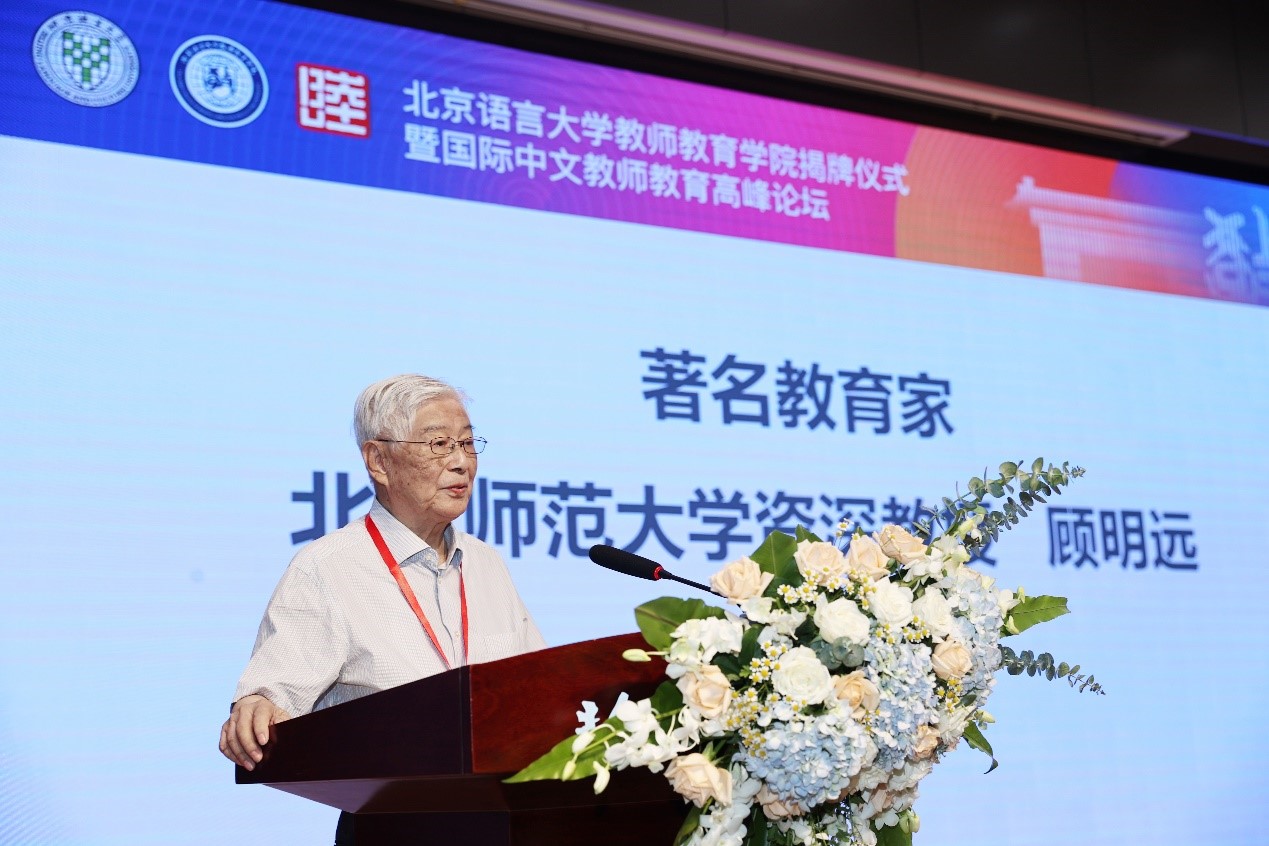著名教育家顾明远先生、北京大学中文系陆俭明先生、北京语言大学刘珣先生、北京大学对外汉语教育学院院长赵杨教授、清华大学教育研究院李曼丽教授先后致辞,充分肯定北京语言大学教师教育学院的成立对我国教育事业发展的重要意义,并期待深化与北语的合作,共同为国际中文教育事业的发展做出新的贡献。