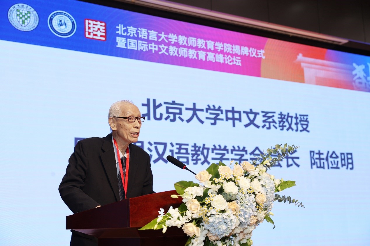 北京大学中文系教授、原世界汉语教学学会会长陆俭明致辞