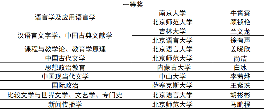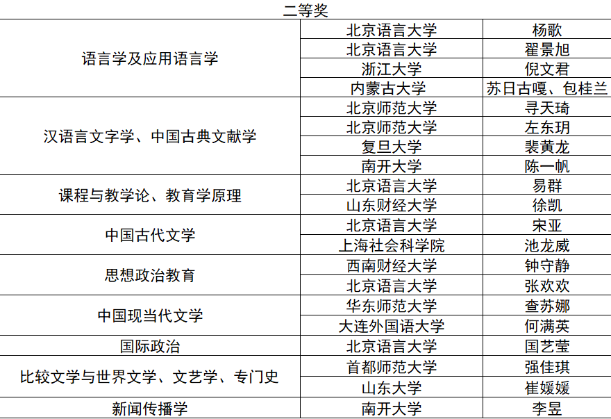 北京语言大学人文社会科学研究生学术论坛沿袭自有17年历史的“人文学术月”,自2015年创立论坛形式以来,在国内众多高校中的影响不断提高,并取得良好反响。今年举办第六届论坛,由教师教育学院、文学院、国际关系学院、新闻传播学院、马克思主义学院联合主办,由各学院研究生会承办,为校内外博士生、硕士生及优秀本科生搭建学术交流平台。本届研究生论坛自去年12月启动征稿以来,不仅受到了校内师生的广泛关注,还得到了来自北京大学、北京师范大学、复旦大学、厦门大学、浙江大学、萨塞克斯大学、都灵大学等校外同学的参与和支持。论坛共计收到来自中外多所高校的543篇有效稿件,经过匿名评审,共有58篇论文入围分论坛答辩环节。经过分组答辩报告会,选出一等奖11名,二等奖20名,三等奖27名。获奖名单见尾图。