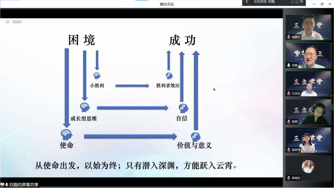 刘嘉教授以“潜入深渊,方能跃入云霄”为题引,从个人成长经历出发,讲述了自己选择心理学、一直深深热爱并躬耕这一领域的原因。他通过分享自己在美国求学以及回国后做科研的亲身经历,深入浅出地讲述了“习得性无助”“胜利者效应”“成长型思维”等心理学知识,勉励北语青年学子培养成长型思维,肩负起使命,勇往直前。刘嘉教授紧扣“三立学堂”的立意,自然地将专业的心理学知识融入自身经历,有深度、有涵养,既有理论支撑,又有生动实例,为北语师生献上了精彩一课。
