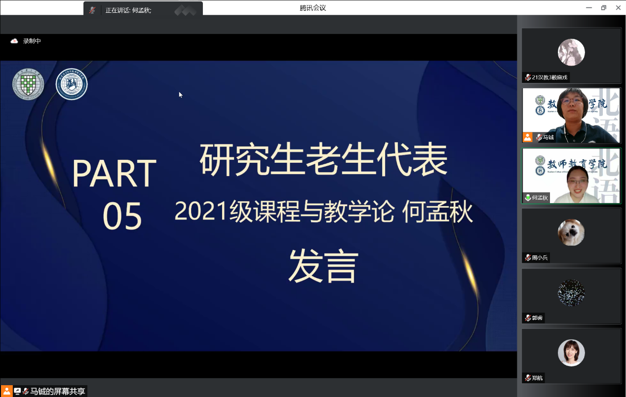 2022年9月5日下午,教师教育学院2022年开学典礼于线上顺利举办。学院党委书记程娟教授、院长兼党委副书记施家炜教授及全院教师出席,全体2022级本研新生和澳门理工大学汉语国际教育专业交流生参加。典礼由学院研究生辅导员马铖主持。