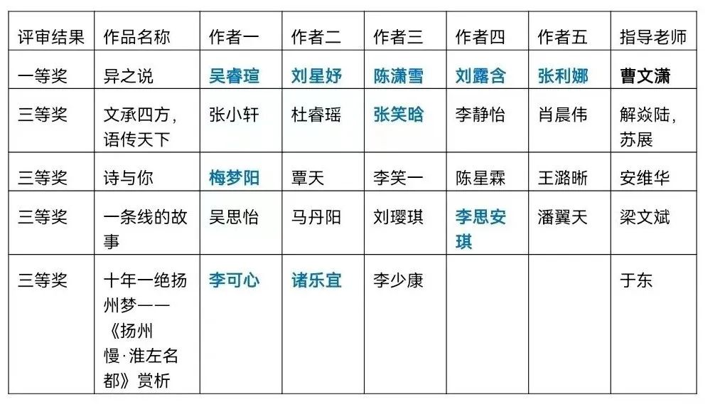 国赛获奖名单中的教院学子如下所示,其中我院本科生辅导员曹文潇老师指导的团队荣获一等奖