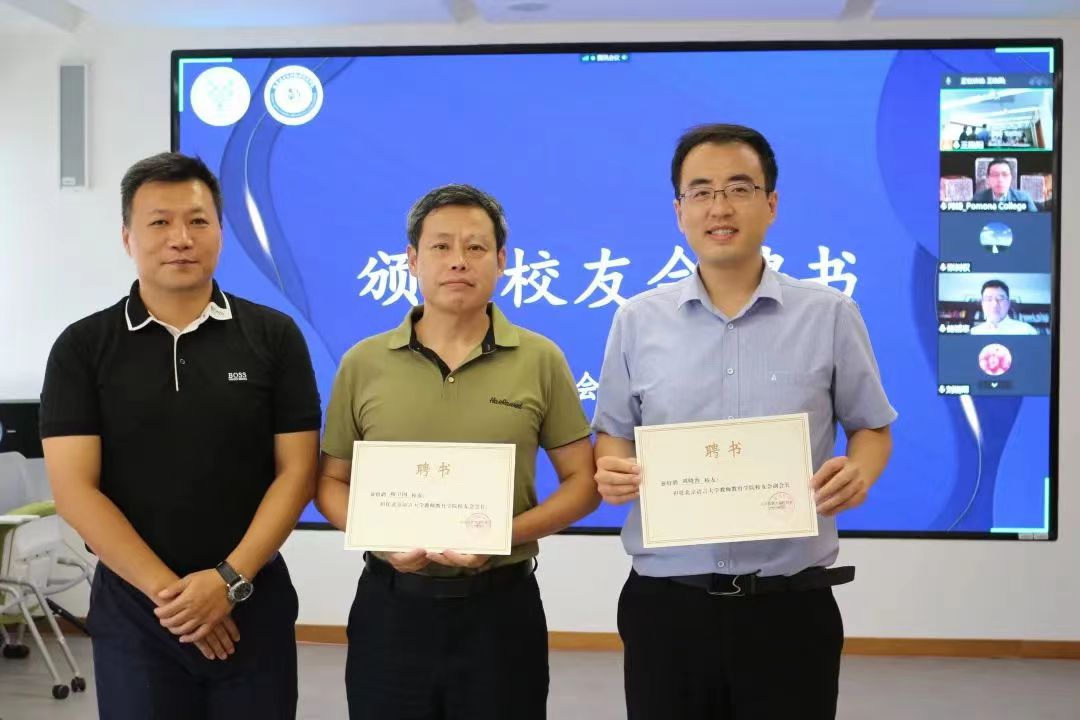 王玎副秘书长宣读了学院校友会章程,为校友会活动提供规范和依据,保障校友会行稳致远、健康发展。张宝钧副校长为学院校友会颁发匾额;校友工作办公室主任马小垒为学院校友会常务理事会成员颁发聘书。