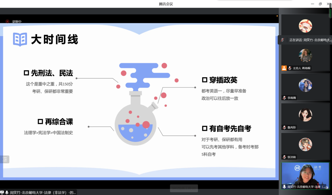 交流会上,李梓瑄作为行政保研的代表,详细讲解了行政保研的准备工作和日常学习生活中的注意点;刘露含则重点讲述了调整心态的方法,她表示,既要保持心态和学习进度的“稳”,也应尽量减少拖延,适量运动来缓解压力;尹心怡则细致地为同学们介绍了保研基本流程,并分享了她的笔试、面试的过程;张洁铭对同学们专业课的学习提出了一些建议,并鼓励同学们欣赏他人优势、多向优秀的人学习;周笑竹则分享了跨专业保研的独特经历,建议有相关想法的同学们独立、主动关注有意向报考的院校信息,重视相关面试技巧;最后,黄可钦分享了自己申请非大陆院校的经验,强调了团队合作和资源利用的重要性。