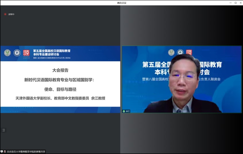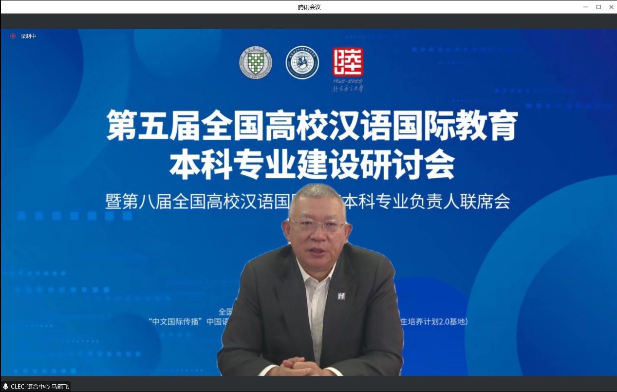 北京语言大学校长、教育部中文教指委副主任刘利在开幕辞中指出,本届研讨会极为敏锐地关注到了汉语国际教育当前机遇挑战并存的形势,既关注学科内涵与专业定位、指标体系与评价标准等理论问题,也关注课程体系与教材研发、实习实践与创新创业等实践问题;既关注国际中文教育发展走向,也关注新文科、智慧教育、“双一流”建设和基础学科拔尖学生培养等高等教育发展趋势,着力提升本专业服务于国家战略和社会需求的能力。在建校60周年的新起点上,北京语言大学还将继续发挥自身在国际中文教育领域深厚的学科积累,依托新获批的“中文国际传播”中国语言文学拔尖学生培养基地和汉语国际教育专业虚拟教研室这2个国家级人才培养平台,在全国高校积极发挥共建共享、辐射带动作用。他呼吁各位专家学者共同奋斗,加快构建具有中国特色的汉语国际教育理论和实践体系,大力推进专业内涵发展,不断加强专业建设,提高人才培养质量,更好服务于教育对外开放和国家国际传播能力建设,主动担当起新时代国家战略需求所赋予国际中文教育的新使命和新要求。