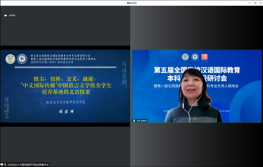 在新文科、“双一流”建设和基础学科拔尖学生培养计划2.0等背景下,国际中文教育进入高质量内涵发展的新阶段,汉语国际教育专业人才培养出现了许多新动向与新挑战。为进一步推动学科建设与专业发展,在教育部高等教育司、教师工作司、中文教指委、中外语言交流合作中心、北京市教育委员会的大力支持与热情指导下,2022年11月18日至20日,由北京语言大学、华东师范大学、北京外国语大学、上海外国语大学4家主席单位,华中科技大学、南京大学、南开大学、武汉大学、中央民族大学5家副主席单位联合主办,北京语言大学教师教育学院/全国高校汉语国际教育本科专业负责人联席会秘书处/教育部“中文国际传播”中国语言文学拔尖学生培养基地/教育部汉语国际教育专业虚拟教研室承办的“第五届全国高校汉语国际教育本科专业建设研讨会暨第八届全国高校汉语国际教育本科专业负责人联席会”在北语成功召开。