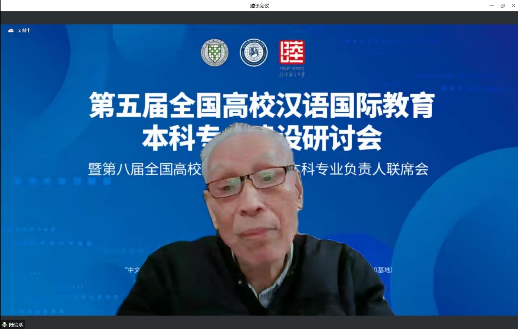 本届研讨会的主题为“新时代汉语国际教育本科专业的机遇挑战与创新发展”,继18日晚召开联席会主席团会议,就联席会重点工作做讨论部署及展望后,19日上午,大会开幕式隆重举行。教育部中外语言交流合作中心党委书记、主任马箭飞,北京语言大学校长、教育部中文教指委副主任刘利,天津外国语大学副校长余江,北京语言大学副校长聂丹,北京大学中文系教授、原世界汉语教学学会会长陆俭明,北京语言大学教授、原文化学院/教师进修学院院长刘珣等校内外领导嘉宾出席。开幕式由北京语言大学教师教育学院党委书记程娟主持。来自全国近50家高校、期刊、教育机构的近150位专家学者受邀参会并发表学术见解,另有逾200名师生齐聚云端、共襄盛举。