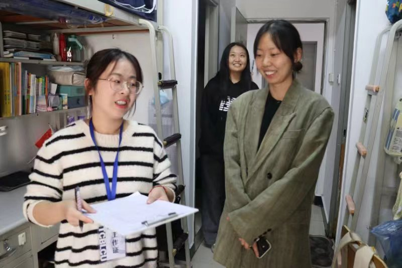 为全面加强新时代学生劳动教育,树立日常生活劳动观念,培育积极劳动精神,养成良好劳动习惯,着力构建具有教院特色的德智体美劳全面发展的培养体系。教师教育学院团委生活权益部于2023年10月27日下午2点进行了本学期第二次宿舍检查,兼职辅导员王慧琳老师一同前往。