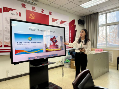 在“古代对外汉语教学”篇章中,同学们共同“穿梭时空”,从汉代至清代的中外交流史实中探索古代中国的对外汉语教学足迹,观看学习了学校旗帜型班团组织21级汉语国际教育2班同学们在国子监实地研学所录制的微团课,生动体会古代对外汉语教学的场景与特色。肖凯骜同学结合自己的参观体验与家乡西安在唐朝接收外国遣唐使的历史,表达了对语言文化传承传播的理解。