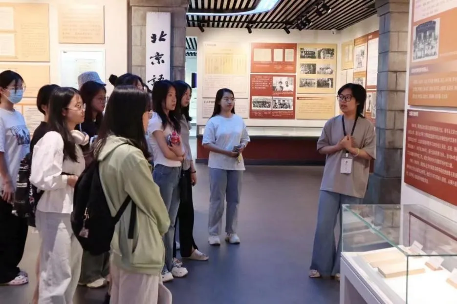 参加2024年第一批入党发展对象培训班的全体学员在专业讲解员的带领下,正式开启了校史探寻之旅。校史馆内陈列着北京语言大学自建校以来的各种丰富史料,详尽呈现了我校在语言教育、学科建设和党建方面的卓越成就。