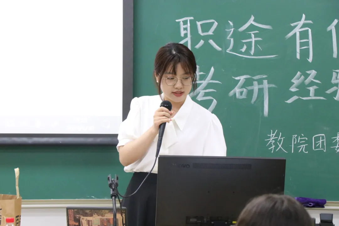 5月30日,教师教育学院考研经验交流会于教二128顺利举办,本次交流会旨在助力学生规划学习生涯,明确努力方向。活动由学术发展部部员刁博逸主持,邀请了2020级汉语国际教育专业的优秀本科生李然、陈潇雪、刘畅和李嘉仪分享宝贵的考研经验。怀揣考研梦想的学子们齐聚一堂,共同汲取宝贵的经验与智慧。