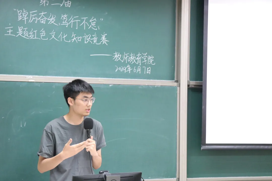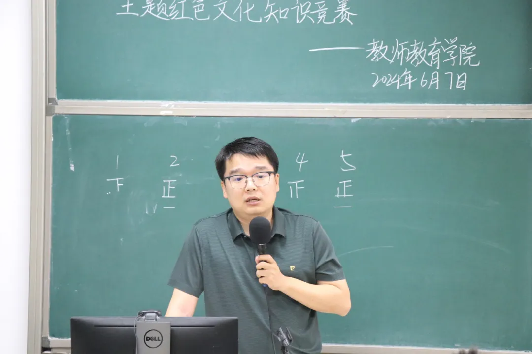 6月7日,教师教育学院第二届“踔厉奋发,笃行不怠”主题红色文化知识竞赛顺利举办,组织部部员杨瑷宁主持活动。本次活动旨在积极响应党中央号召,深入学习贯彻党史和两会精神,并展望即将举行的巴黎奥运会所蕴含的体育精神与国际交流机遇,激发学生对国家时政的关注热情与对国际体育盛事的认识,展现青年的风采和力量。马克思主义学院王义夫老师、教师教育学院语言学及应用语言学党支部书记、兼职辅导员王慧琳老师,教师教育学院兼职辅导员常嘉琦老师出席活动并担任评委。