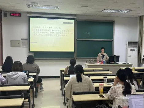 6月28日下午,北京语言大学“中文国际传播”中国语言文学拔尖学生培养基地名师讲坛邀请到了北京语言大学文学院的钱婉约教授,为同学们开展了以“日本茶道的儒释道”为主题的专题讲座。钱婉约教授由日本独特的茶文化引入,深入介绍了日本茶道的历史、形式与理念,并分析了日本茶文化与中华儒学理念的种种联系,为同学们描绘了一幅如繁花般灿烂的跨文化绘图。