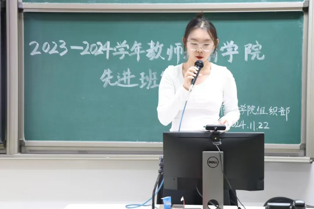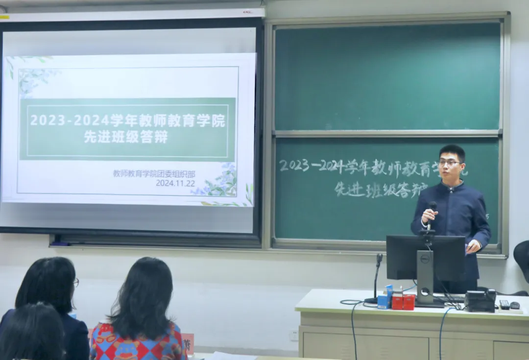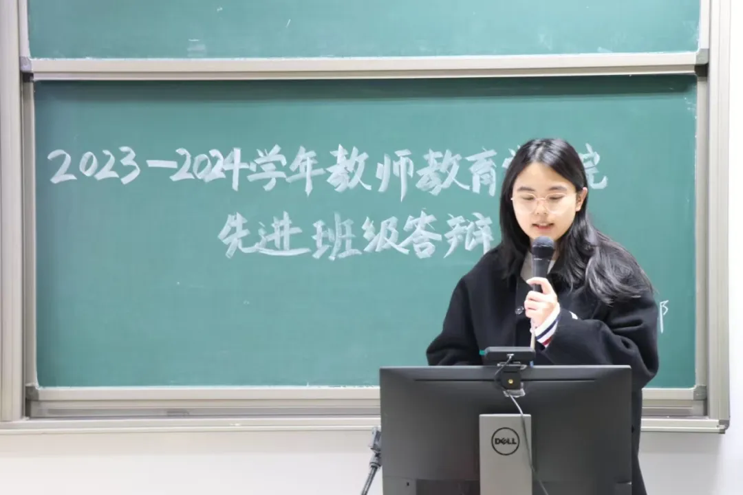 为传承学院班级文化、加强班级建设,营建优良学风,教师教育学院2023-2024学年先进班集体答辩活动顺利举行。本次答辩比赛旨在营造良好学习氛围,给各班班委提供班级建设参考,增强班集体的凝聚力和集体荣誉意识。2022级、2023级各班班委参与此次答辩,教师教育学院团委书记、研究生辅导员马铖老师,团委副书记、本科生辅导员曹文潇老师出席本次活动并担任评委,2024级各班班委到场观摩学习并参与打分。院团委组织部干事宋亦阳主持活动。