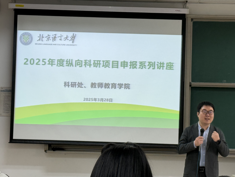 为了进一步做好我校北京市教育科学规划课题申报工作,科研处联合教师教育学院于4月28日在教四楼103举办了“2025年度纵向科研项目申报系列讲座”之“北京市教育科学规划课题申报动员和经验交流会”。会议邀请了教师教育学院副研究员田一老师做经验交流。各单位教师代表和科研秘书约七十余人参加了交流会,会议由科研处处长黄伟主持。