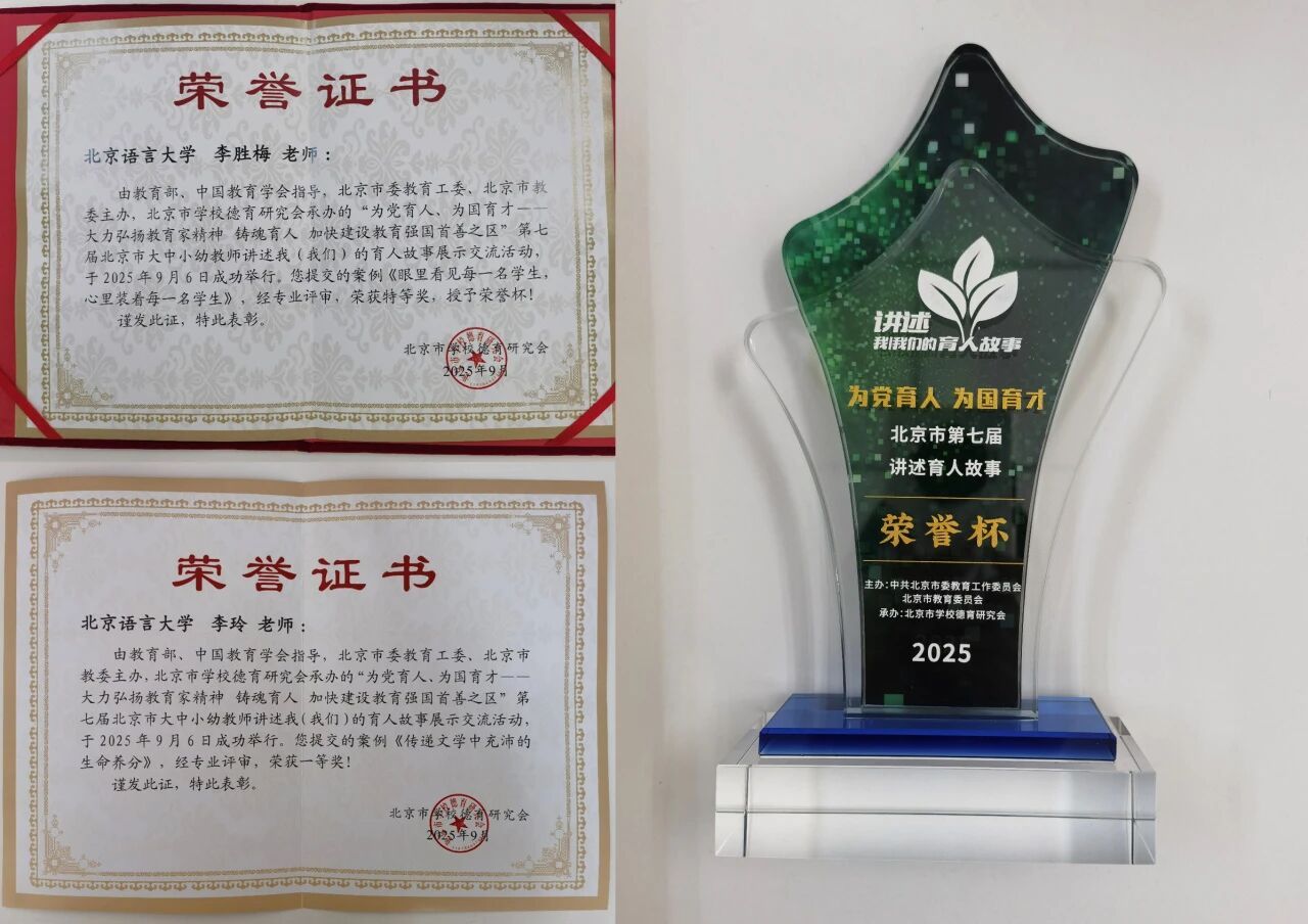 近日,由教育部、中国教育学会指导,北京市委教育工委、北京市教委主办,北京市学校德育研究会承办的第七届北京市大中小幼教师讲述育人故事展示交流活动在京举行。我校推荐报送的2个育人故事案例在全市近500个案例中脱颖而出,取得优异成绩。经专业评审,我院李胜梅教授荣获特等奖和讲述育人故事荣誉杯。