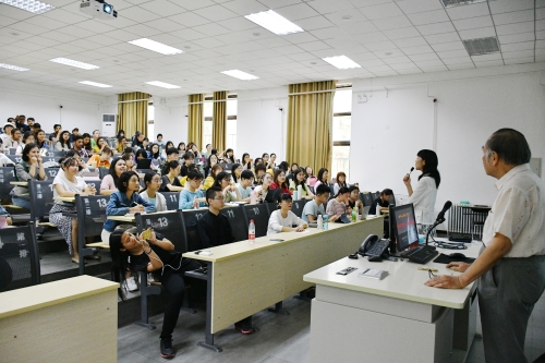 2019年9月11日下午2点,由北京语言大学人文社会科学学部汉语教育学院联合学校教务处举办的“汉语第二语言教学系列专题”第一次讲座在主南200教室顺利举行。汉语教育学院刘珣教授作为主讲人,本课程负责人、人文社会科学学部副主任施家炜老师担任主持人。本次讲座主题为“对外汉语教学的学科特点和学科体系”,吸引了近百名本科生、研究生、留学生以及教师参加。