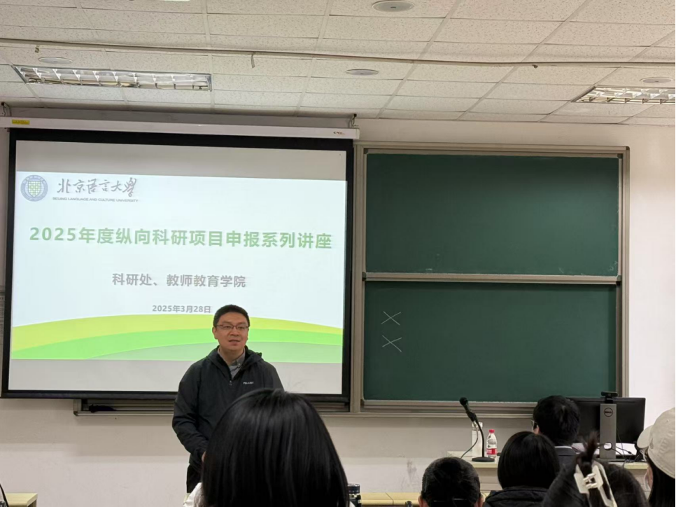 为了进一步做好我校北京市教育科学规划课题申报工作,科研处联合教师教育学院于4月28日在教四楼103举办了“2025年度纵向科研项目申报系列讲座”之“北京市教育科学规划课题申报动员和经验交流会”。会议邀请了教师教育学院副研究员田一老师做经验交流。各单位教师代表和科研秘书约七十余人参加了交流会,会议由科研处处长黄伟主持。