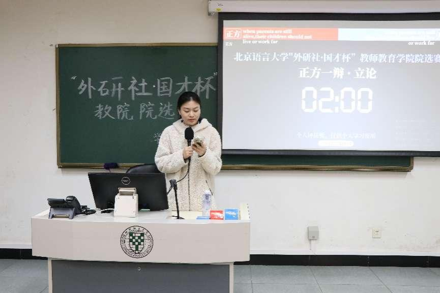 为锻炼教师教育学院同学们的思辨能力和语言组织能力,同时为校级辩论赛做好学院人才选拔工作,2025年“外研社·国才杯”全国大学生英语辩论大赛教院选拔赛于3月11日晚顺利举行。本次辩论赛由2022级英语专业林语彤担任评委,学术发展部部长、23汉教3班刘乐乐主持。