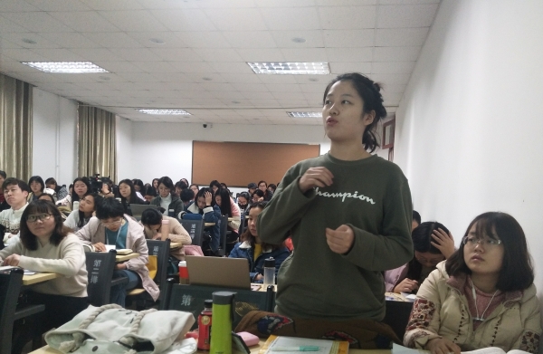 紧接着,杨教授在理论叙述后又为同学们带了大量操作性强、实用性高、可行性大的微技能训练实践方法与技巧。共包括“关于聆听理解(听力)微技能”、“关于口头表达(说话)微技能”、”聆听理解(听力)微技能的训练方法”以及“口头表达(说话)微技能的训练方法”四个方面。讲座过程中,杨教授幽默风趣,妙语连珠,常与学生互动,其实际内容也体现了杨惠元教授在对外汉语教学过程中以学生为中心、注重精讲多练、培养学生综合的语言能力的特色教学风格。