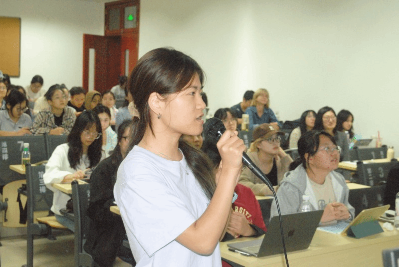 在介绍了教学原则之后,苏英霞教授分享了在语法教学实践中的失误案例,并从教学原则的角度全面分析了课程案例的优缺点,让同学们在对比中深刻理解到避免教学误区的重要性,同时也和同学们探讨了一些改进方案。苏教授在课堂末提出:“国际中文教师要在课下多钻研,课下的功夫到了,课堂上才会游刃有余。” 这一寄语不仅赢得了同学们的赞同,也为大家未来的学习与实践指明了方向。