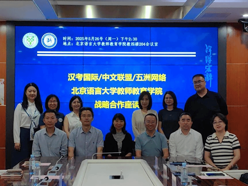 近日,教师教育学院与汉考国际/中文联盟/五洲网络战略合作座谈会顺利召开。汉考国际/五洲网络总经理李佩泽、美国柯斯理教育集团董事彭兴旺、中文联盟/五洲网络教学总监于艳、技术总监周成亮、市场副总监李盼、教学部经理陈敏,教师教育学院院长施家炜,党委书记王孝强,党委副书记、纪委书记李晓波,汉语教育教研室主任郑家平,学办主任马铖,教务办负责人李晓雯出席了会议。双方围绕AI云教研平台建设、全球中文教师赋能、海外本土教师培训、线上课程建设、学生实习深造等议题开展了卓有成效的讨论,达成了合作意向。